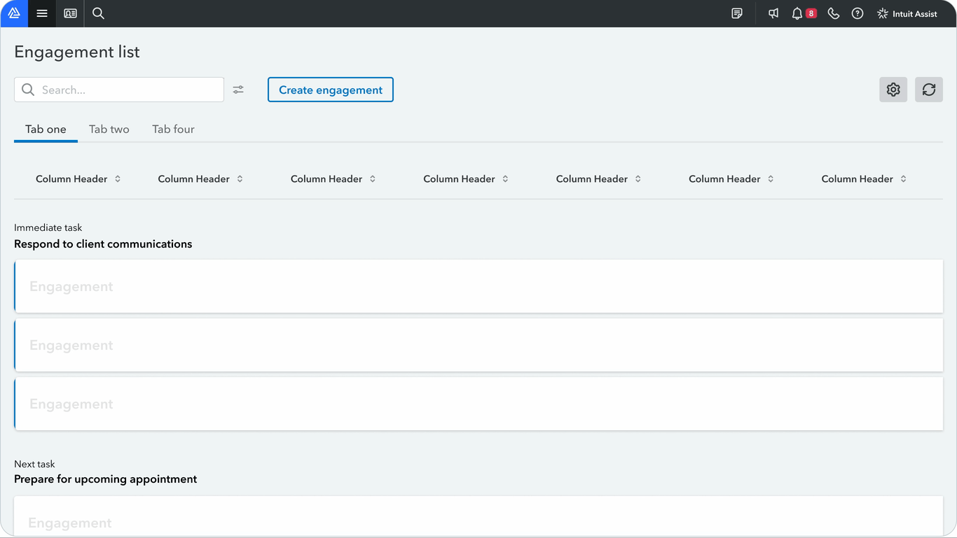 A few example screens of the new archetype being introduced into Intuit Expert Portal (IEP)